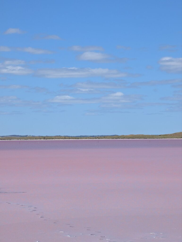 Unser Zwischenziel auf dem Weg nach Robe ist der Pink Lake. Der See schimmert tatsächlich pink, was durch eine chemische Reaktion ausgelöst wird, die von einer speziellen Wasserpflanze verursacht wird. Auf der Route dorthin müssen wir eine kleine Fähre überqueren, rund 250 Meter. Sie fährt an einem Seil befestigt rund um die Uhr hin und her und wird sogar von einem Kapitän gesteuert. Bei uns wäre da wohl längst eine Brücke gebaut worden.