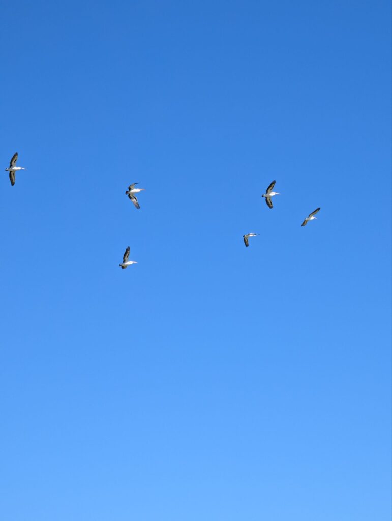 Auf dem weiteren Weg kommen wir an einem See vorbei, der intensiv grün gefärbt ist, sowie an einem Aussichtspunkt, von dem man auf die Pelican Island sehen kann, und passend dazu fliegen dort auch mehrere Pelikane über uns hinweg.