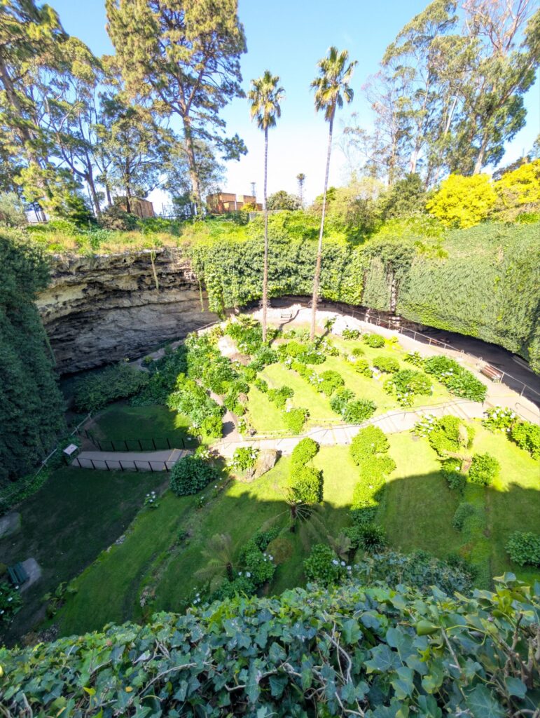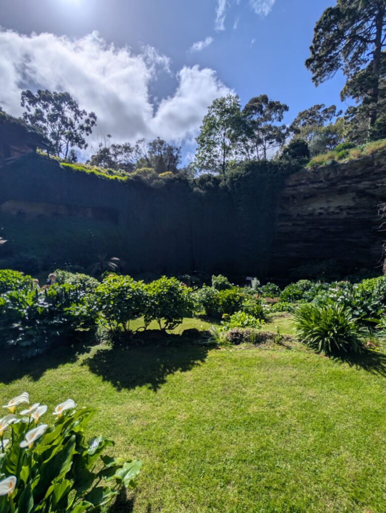 Das erste Ziel ist der Cave Garden, ein Senkloch, das zu einem kleinen Garten umgestaltet wurde.