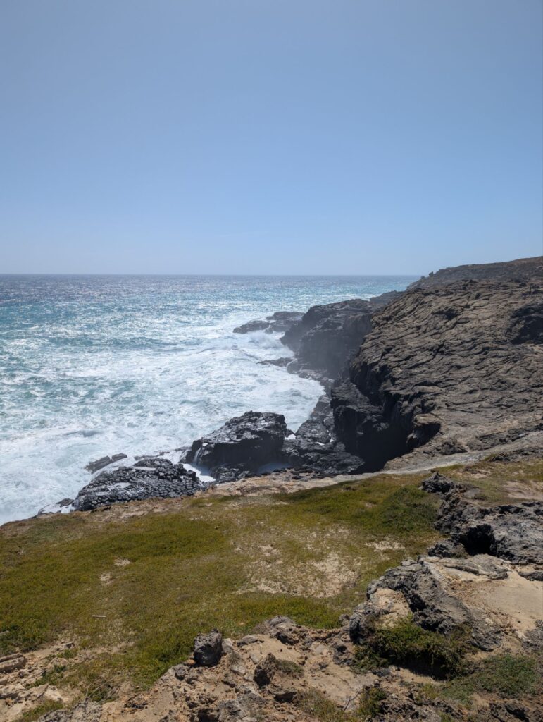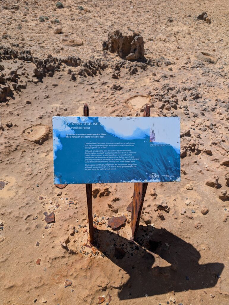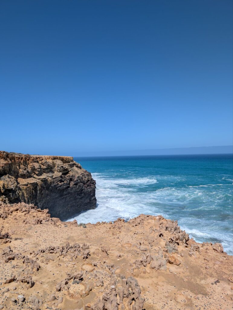 Unser nächstes Ziel ist etwa anderthalb Stunden entfernt, die Bridgewater Blowholes. Auf dem Weg dorthin machen wir noch einen kurzen Stopp beim Hell’s Hole, einem weiteren Senkloch, in dem man sogar tauchen kann, allerdings nur mit Anmeldung beim örtlichen Tauchverein. Das Ganze scheint recht abenteuerlich zu sein, da man sich dort hinabseilen muss, weil es keinen normalen Abstieg gibt.