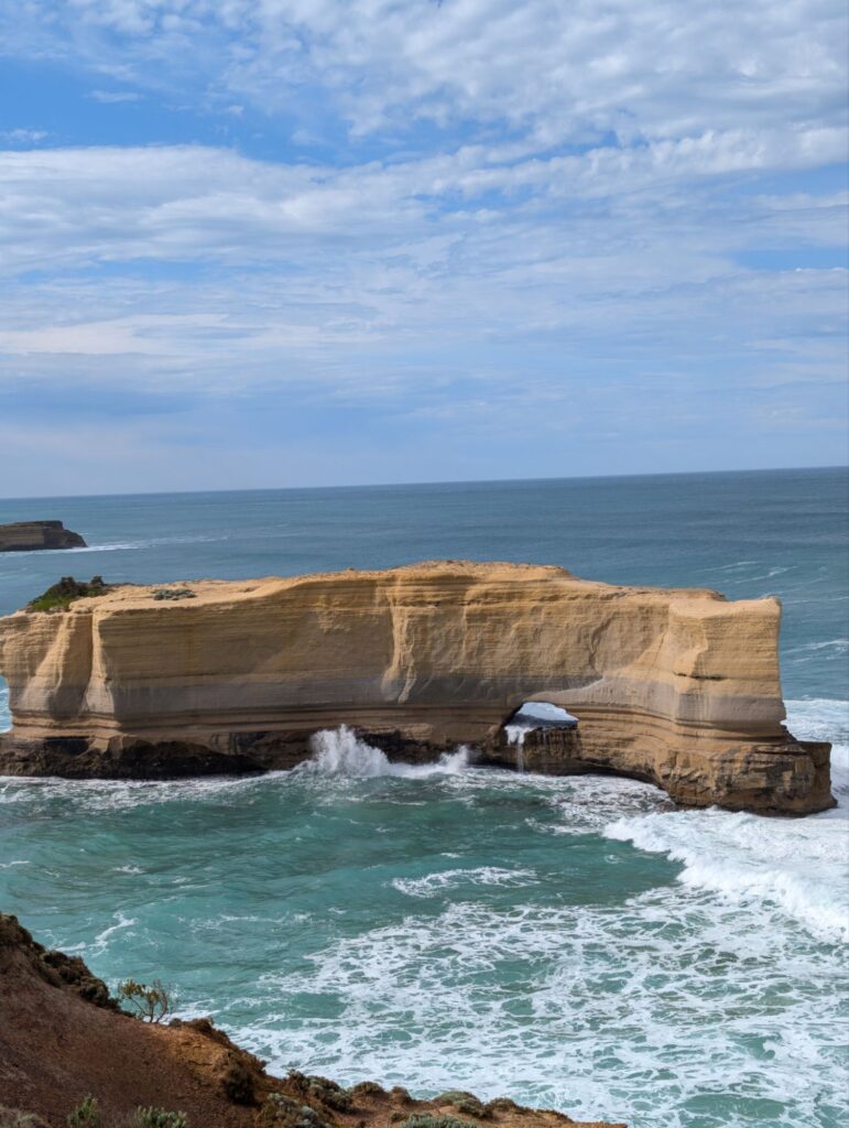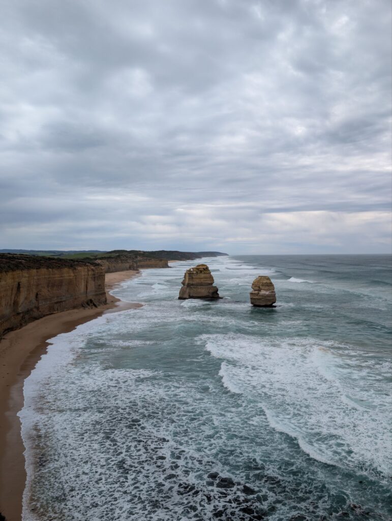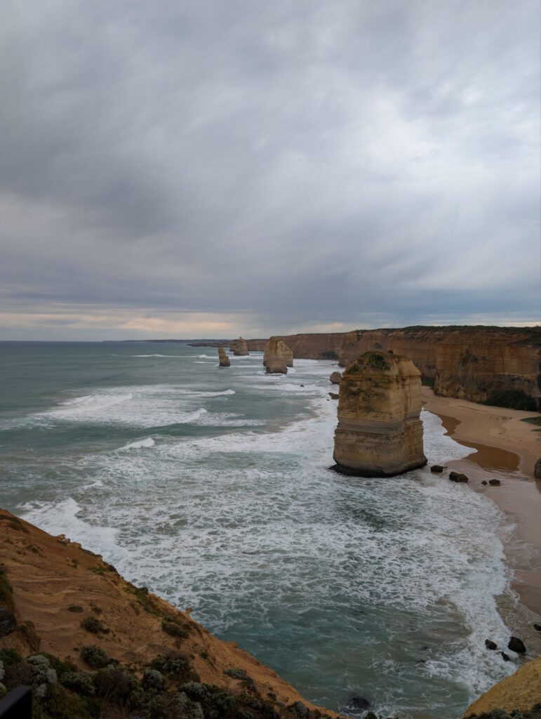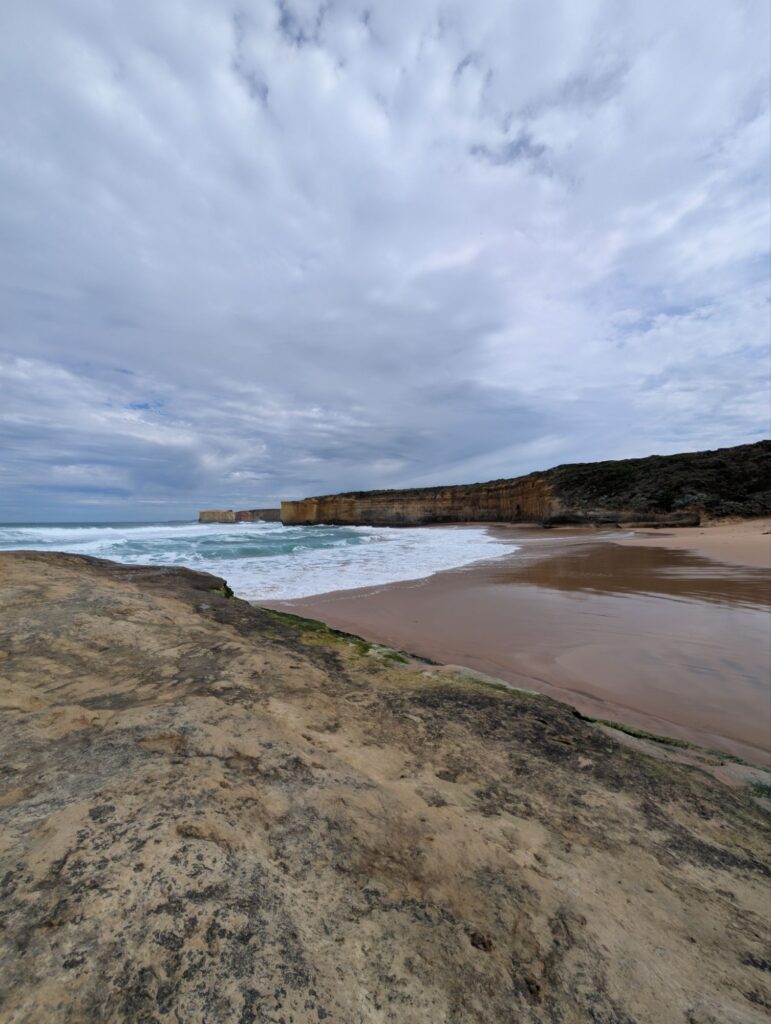 Unser nächster Halt ist der Aussichtspunkt der Twelve Apostles. Von dort sieht man viele der Felsen, die einzeln im Wasser stehen. Beeindruckend, aber nach all den anderen Stopps fast etwas unspektakulär. Also machen wir uns bald auf den Weg zum nächsten Ziel.