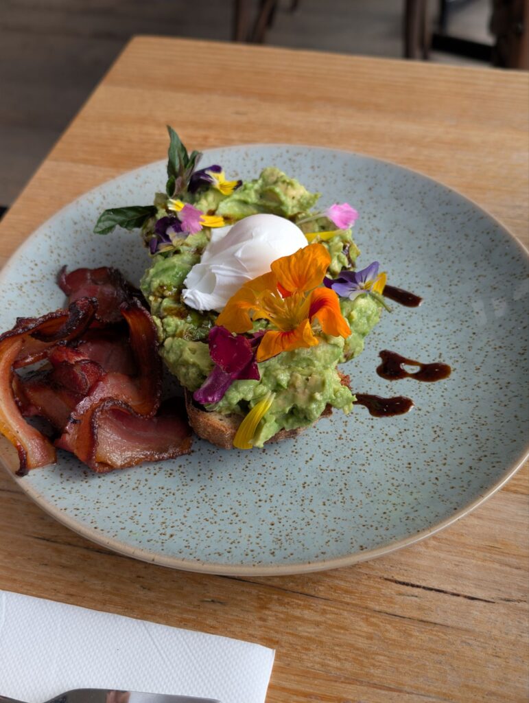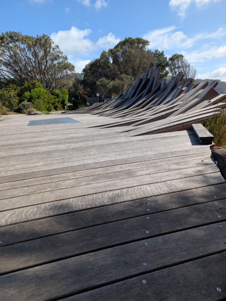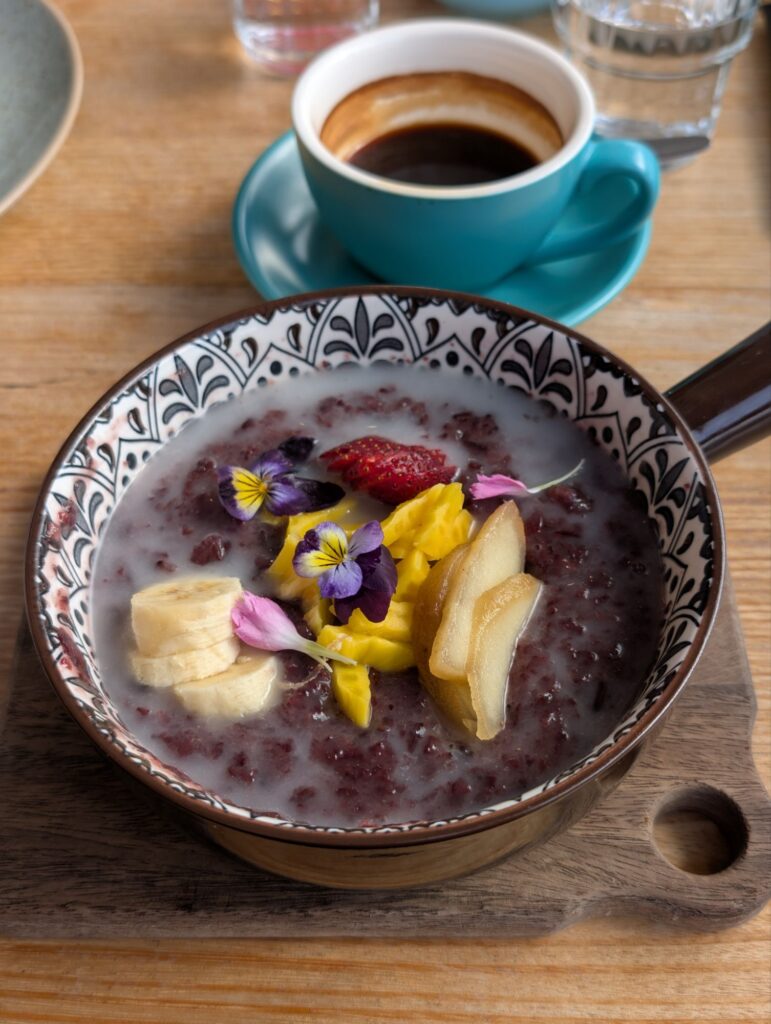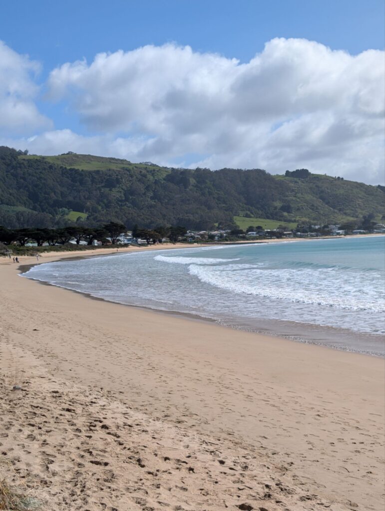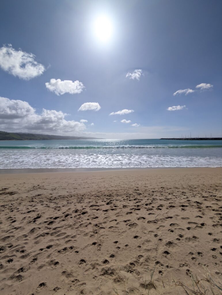 Heute gibt es das Frühstück erst nach dem Auschecken, denn wir möchten in einem Café in Apollo Bay frühstücken. Wir packen also unsere Sachen, laden sie ins Auto und fahren zum Café. Ich bestelle mir Milchreis aus schwarzem Reis mit Kokosmilch, Catrin nimmt Avocado-Toast mit Speck und Ei. Nach dem Essen spazieren wir noch kurz am Strand entlang, bevor wir wieder zum Auto gehen.