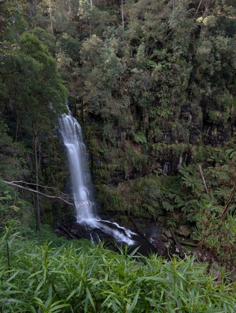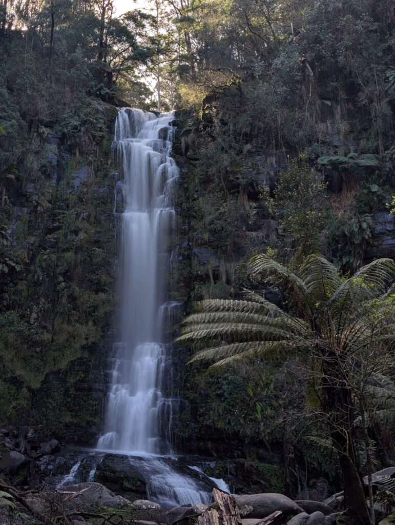 Danach geht es weiter zum letzten Stopp des Tages: dem Erskine Falls. Der Weg dorthin ist wieder eine Offroad-Strecke, dieses Mal darf Catrin fahren. Zu meinem Glück müssen wir nicht weit laufen, bis wir beim Wasserfall ankommen. Er ist vermutlich der höchste, den wir bisher gesehen haben. Wir bestaunen ihn eine Weile, bevor wir uns auf den Rückweg machen.