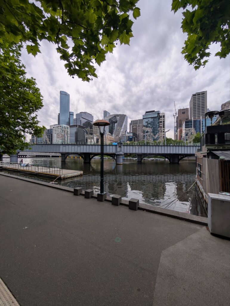 Wir gehen auf der Plattform zur anderen Seite, wo man meinen „Bucket-List“-Ort sehen kann: den Albert Park, Austragungsort des Formel-1-Rennens jedes Jahr im März. Das ist zugleich unser nächstes Ziel, etwa 15 Minuten entfernt. Auf dem Weg dorthin machen wir Halt bei einem Asiaten. Ich bestelle Maki, Catrin eine kleine Bowl.