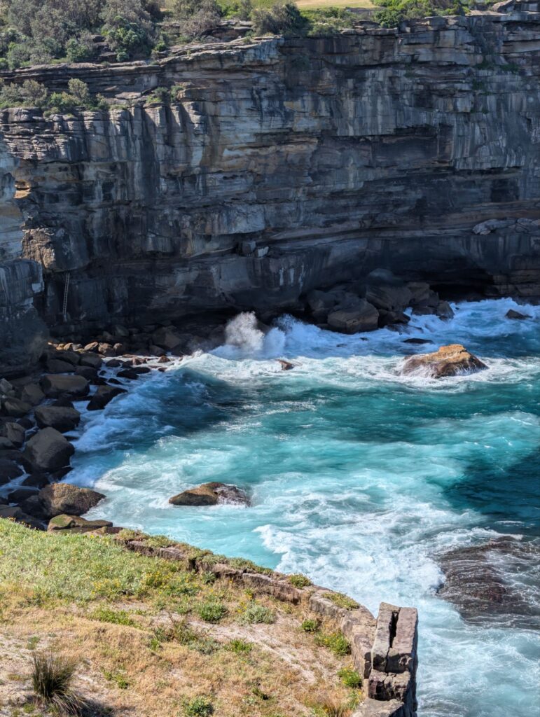 Nachdem wir alles gesehen haben, gehen wir wieder Richtung Strand und starten unseren Weg nach Watsons Bay. Entlang der Strandpromenade gibt es einige Graffitis zu sehen, die wohl aus einem Wettbewerb stammen. Weit kommen wir zunächst nicht, da wir ein Café entdecken und dort eine Pause zum Mittagessen einlegen.
