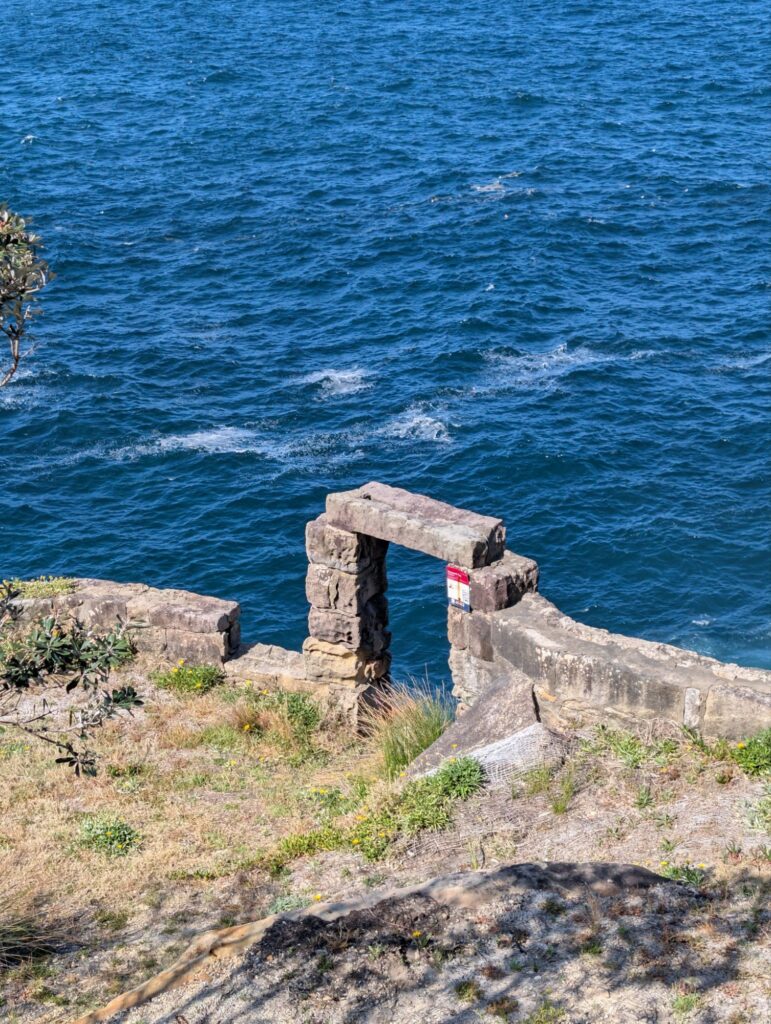Der ausgeschriebene Wanderweg führt danach überwiegend an den Klippen entlang, mit wunderschöner Aussicht auf die Felsen und den Ozean. Wir kommen an einem Leuchtturm und an einer ehemaligen Geschützstation vorbei, wo früher Kanonen standen. Unterwegs sehen wir wieder Wale und haben Glück, dass wir an einem fest installierten Fernglas vorbeikommen. Durch das Fernglas können wir die Wale sehr gut beobachten. Ich habe sogar das Glück, einen Buckelwal aus dem Wasser springen zu sehen, so dass Kopf und beide vorderen Flossen sichtbar sind.