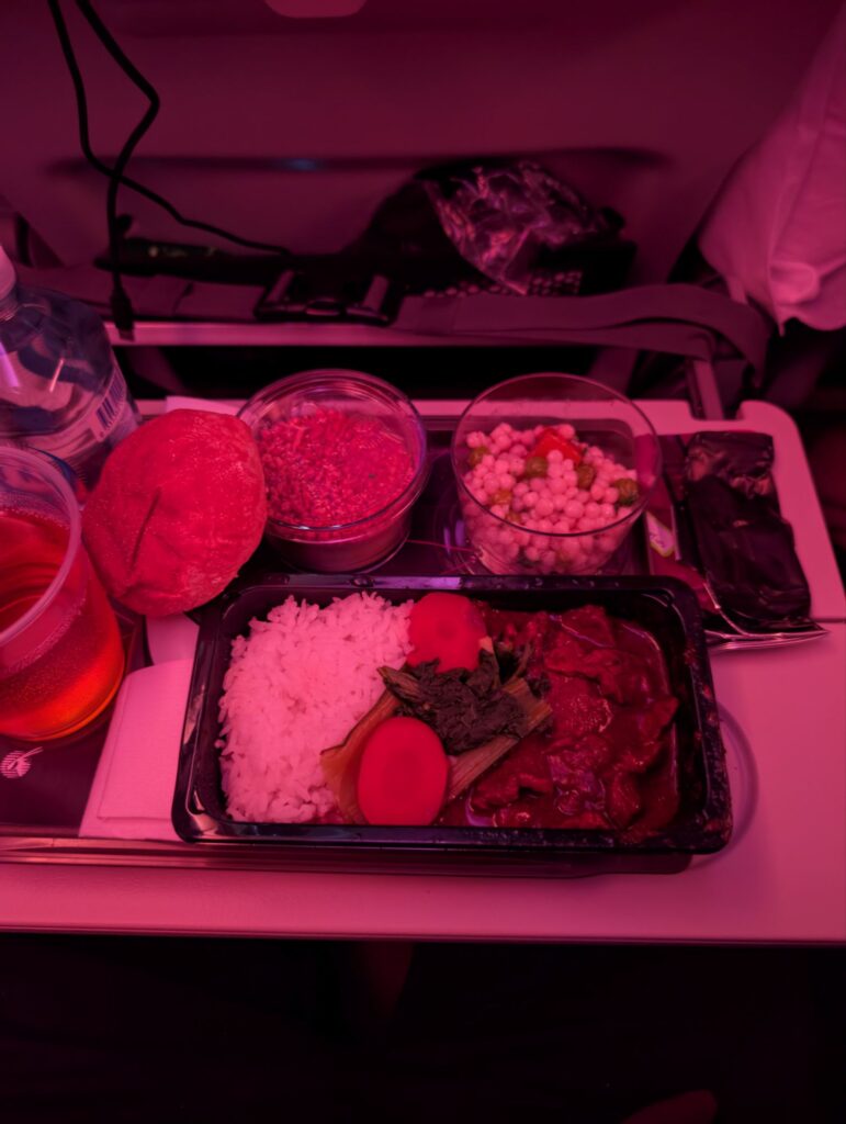 Der Flug fühlt sich wie eine Ewigkeit an: Neben zwei Mahlzeiten besteht er aus Filme schauen und Schlafversuchen. Meine Taktik gegen den Jetlag ist im ersten Flug so viel wie möglich zu schlafen und im zweiten gar nicht mehr. Wir landen in Doha um 04:30 Uhr morgens. Bis zum Weiterflug haben wir etwa vier Stunden Aufenthalt, die wir im botanischen Garten verbringen, etwas essen und dehnen.