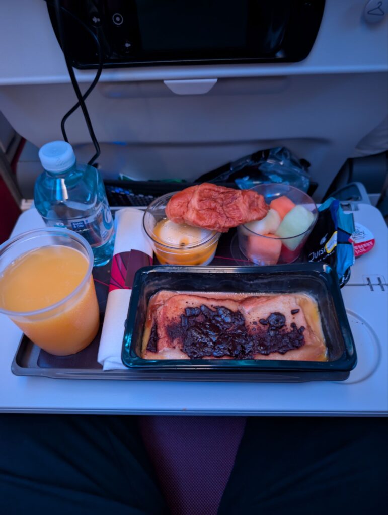 Kurz vor 08:00 Uhr begeben wir uns Richtung Gate. In Österreich ist es dann gerade 07:00 Uhr morgens, daher meine Taktik mit wach bleiben im zweiten Flug. Den rund 7-Stunden-Flug nach Zürich verbringe ich mit Filmen. Das Beste: Unser Flug bietet gratis Internet dank Starlink und das sogar sehr schnell. Nach 7 Stunden Flug erreichen wir Zürich, und ich friere. Es regnet und ist kalt; vor gut 30 Stunden liefen wir noch in T-Shirt und kurzer Hose herum.