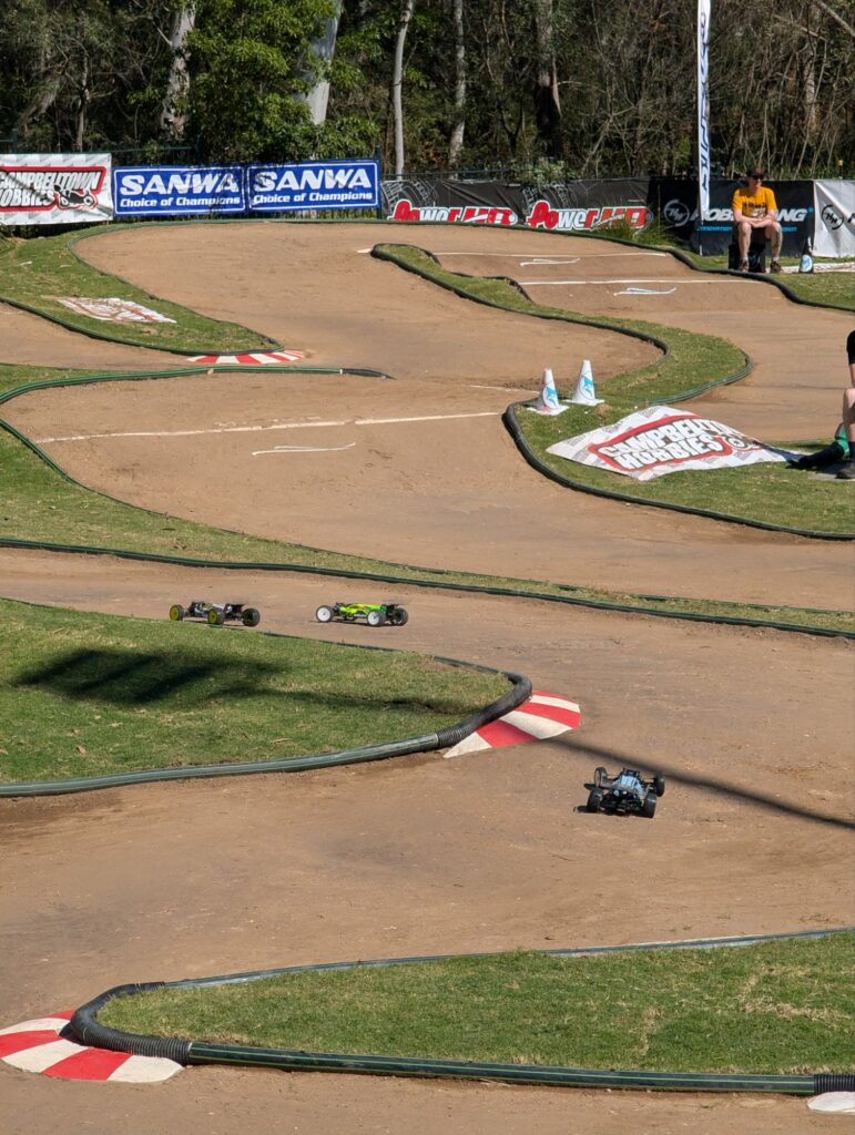 Ich richte mir noch ein Sandwich, und aus dem Plan, um 7:00 Uhr an der Strecke zu sein, wird 7:30 Uhr. Um 7:50 Uhr habe ich den ersten Lauf. Der misslingt leider, weil die Wellen herausspringen, die Ausgänge des Differentials sind zu schmal. Nach dem Lauf baue ich also ein anderes Differential ein, und den nächsten Lauf kann ich beenden.