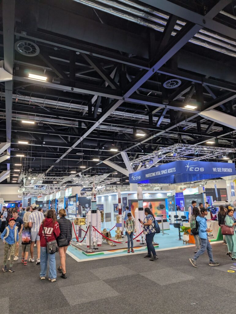 Simon hat herausgefunden, dass man die Weltraumkonferenz heute gratis besuchen kann, und wir haben uns schon vorgestern dafür registriert. Nachdem Simon die zwei Kleinen zum Ferienprogramm gebracht hat, geht es zur Konferenz.