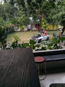 Um 8:00 startet der Tag mit einem kleinen Frühstück (Pfannkuchen mit etwas Banane). Danach heißt es warten bis 10:00 für die Surfstunde. Dieses mal in der Gruppe mit 6 Engländern. Auf dem Programm steht Kurven fahren, dies geschieht durch Drehen des Oberkörpers was eine Gewichtsverlagerung auf dem Board zu Folge hat und so dann entweder nach links oder rechts gedreht wird. Ein paar wenige male hat das geklappt. Die Wellen waren etwas kleiner und angenehmer für den Anfänger wie mich. Gegen 12:30 geht es zurück Richtung Hotel, alle in einem Auto, ein selbstgebautes Cabrio, 8 Personen in einem Auto! TÜV gibt’s hier wohl nicht wenn ma die bastelbude anschaut und die Polizei interessiert es nicht wenn 3 Personen quasi auf dem Kofferraumdeckel sitzen.