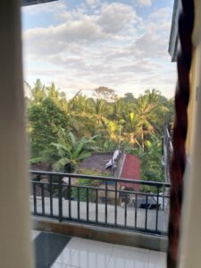 Indonesien oder vielleicht nur Jakarta hat einen hohen Anteil an Muslime, so wurde ich von Gesängen um 04:00 morgens geweckt. Dank Oropax konnte ich dann weiter schlafen, wachte jedoch dann erst um 7:30 auf, somit war der Plan mit dem Besuch des Nationaldenkmal hinfällig da das zu knapp geworden wäre. Um 9:30 geht’s los zum Flughafen für den Flug nach Bali, das vorbestellte Grab ist pünktlich da (220000IDR). Der Check-in geht etwas langsam dafür ging der Security Check ohne Probleme. Am Gate bin ich dann gegen 10:20, 1h vor Boarding, das Boarding beginnt pünktlich um 11:20. Vom Terminal 1 geht es dann mit einem Bus zu einem anderen Terminal wo der Flieger wartet, los geht es dann mit etwas Verspätung. Gelandet bin ich dann ca. 15:00 und gegen 15:45 aus dem Flughafen raus wo ich dann von Lisa in Empfang genommen worden bin. Ab ins Auto und 1,5h fahrt nach Ubud wobei es sich nicht so lange angefühlt hat da wir viel zum reden hatten. Unsere Unterkungt (Dewa House Bisma) in Ubud befindet sich am Rand des “Urwald” in einer Seitengasse. Nach dem wir eingecheckt haben ziehen wir los für die erste Erkundung von Ubud und der Such nach einem Restaurant um Abendzuessen.